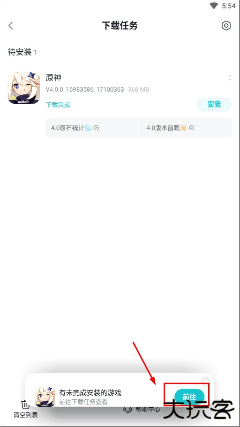 4、等到进度条跑到头显示下载完成,马上点 “前往安装” 这个按钮就行了