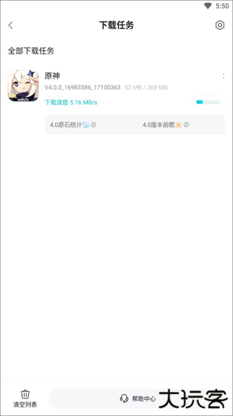 3、按完下载,在 TapTap 的下载任务那儿就能盯着进度条看它一点点跑了