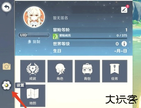 1、确保你是用 TapTap 的账号登录了手机上的《原神》游戏,进游戏后打开 “设置”
