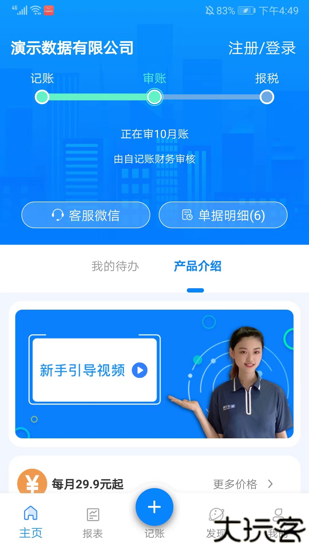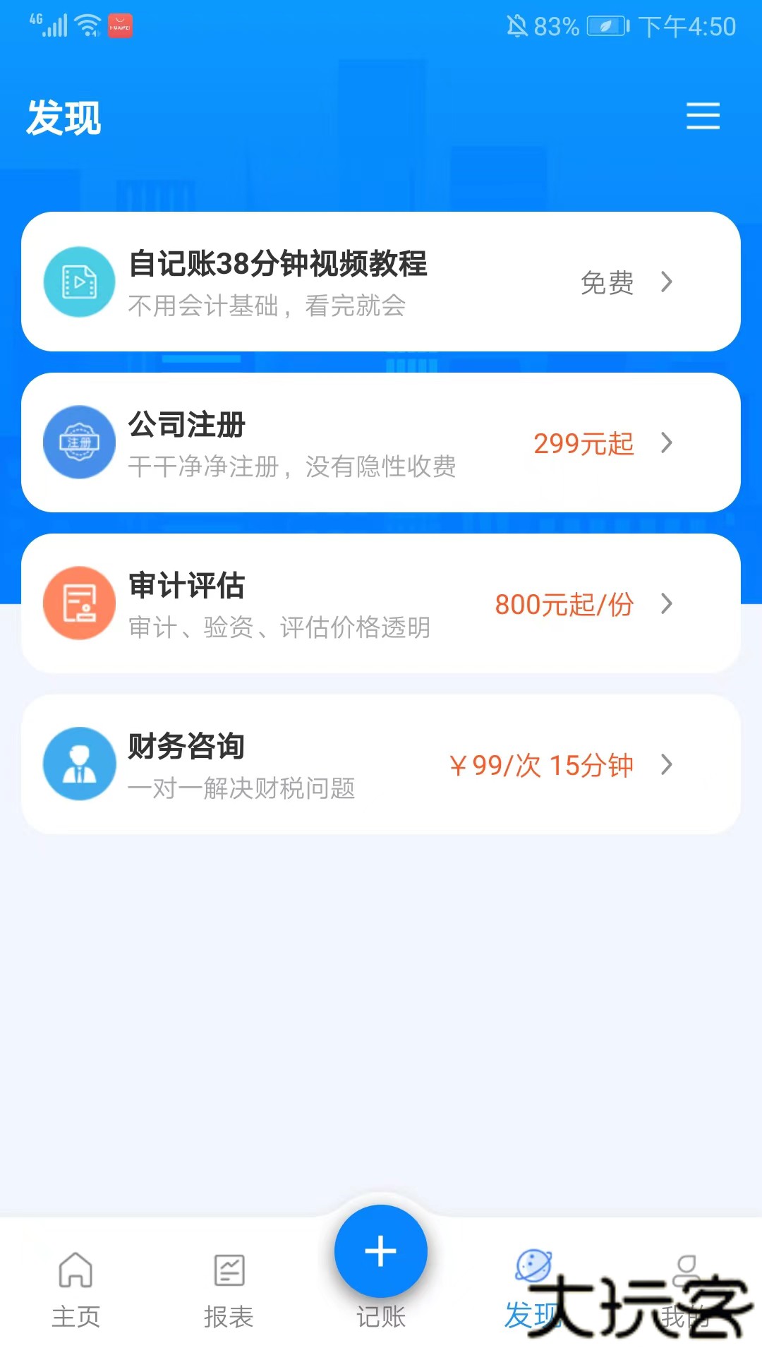 6、【发现】页面藏了不少实用工具,初次接触的教程视频放这,想开新公司的注册服务也有,涉及财务健康度的审计、评估,遇到难题还能找专业财务咨询