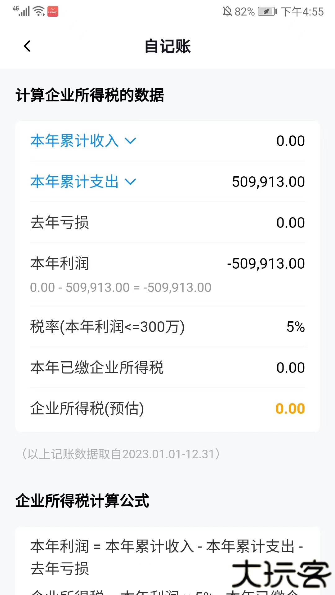 5、想看企业利润怎么算的?点进去具体的所得税报表,关键数字都在这里:年初到现在总共赚了多少(累计收入)、总共花了多少(累计支出)、如果去年亏了今年能抵多少(亏损弥补)、实际的经营利润(本年利润)、显示利润比例(利润率)、以及今年已经提前交了多少所得税(已缴税额)