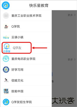 1、打开 q 学友 app 登录后,如果你发现首页显示的不是你的学习机构,先别着急哈!瞧左上角那个机构图标,点它一下