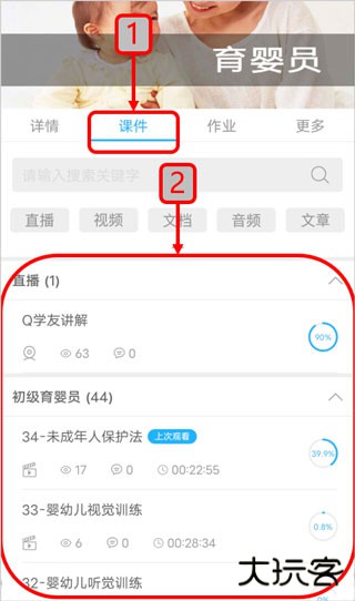 7、班级详情页一般能找到 “课件” 或类似标签。点开 “课件”,里面就是学习资料啦 —— 直播回放、视频课、音频、文档资料、文章等等,想学哪个直接点开就能开始啦