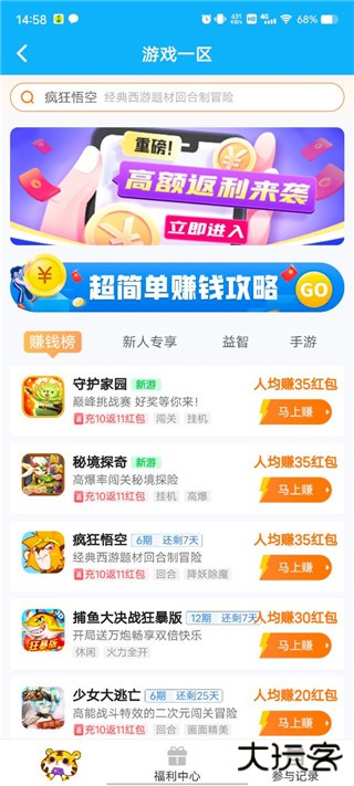 平台会实时提供热门的游戏资讯、新游戏开服消息以及各种深度的玩法攻略。惊喜还不止这些,下载游戏就有红包可拿,还有其他高额红包奖励活动等着你参与,让你玩游戏更有劲头。