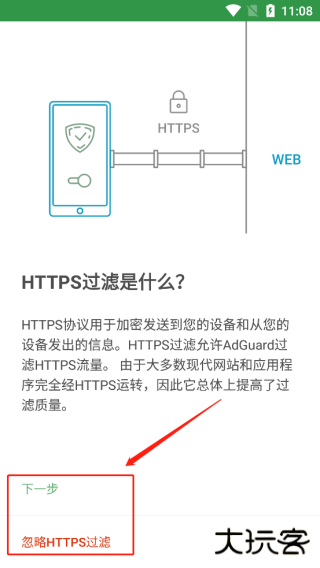 2、可以先了解HTTPS过滤,后选择“下一步”;