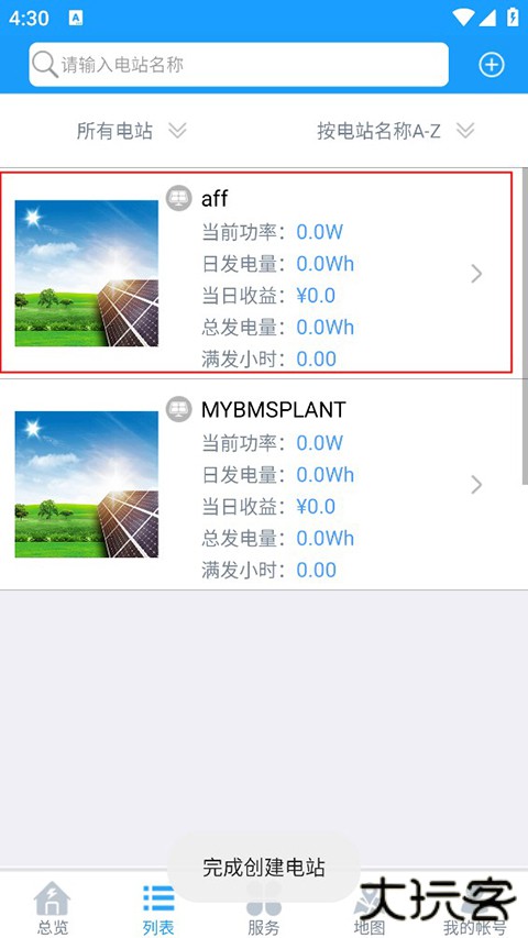 3、信息提交成功并完成电站添加流程后,用户即可返回 “电站列表” 页面查看并管理新添加的电站信息。