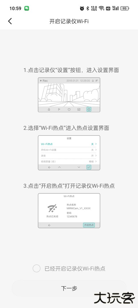 4、完成设备绑定后,系统自动检索记录仪创建的 WiFi 热点。连接该热点后,即可在 App 内实时查看或调取存储的影像资料。