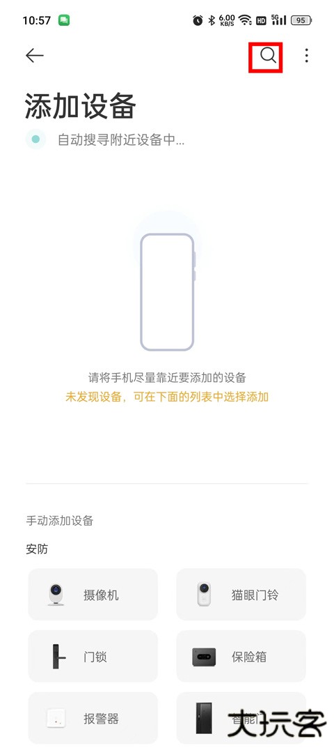 2、点击界面右上角的「+」号图标进入设备添加页面。