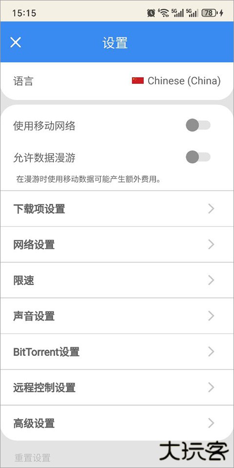 2、点开设置窗口配置选项特别齐全:调网速限制、自动归类文件、挂代理、定时下载统统都有;
