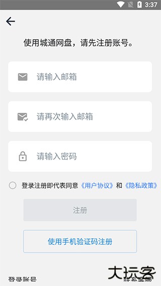 1、进入软件后,新用户需使用邮箱或者使用手机验证码进行注册并登录;