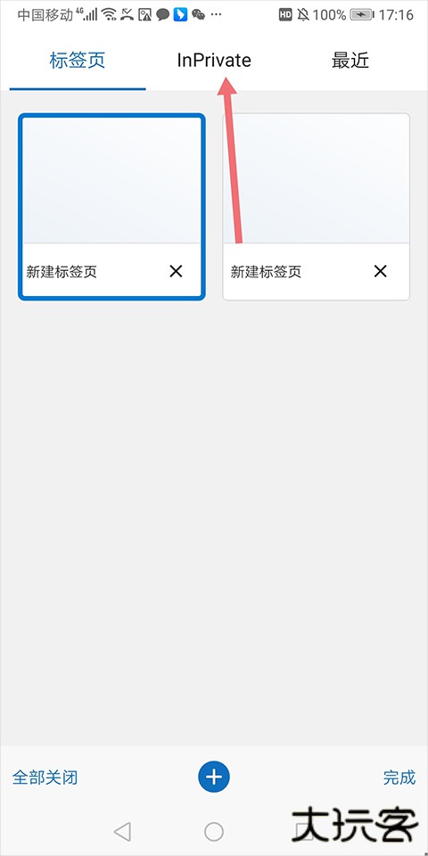 2、页面会跳转到标签管理界面,在此界面顶部定位到【InPrivate】(隐私保护)标签页,轻触切换至此模式。