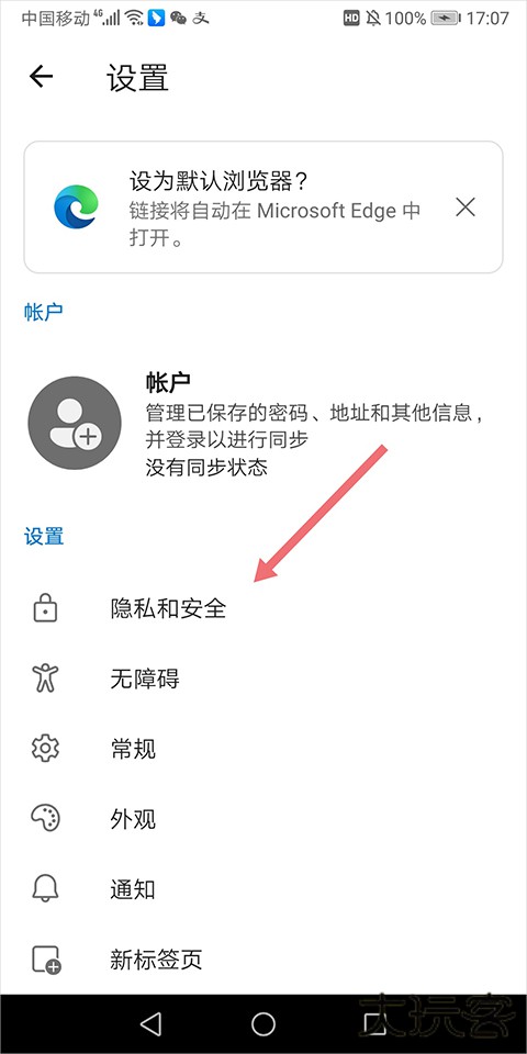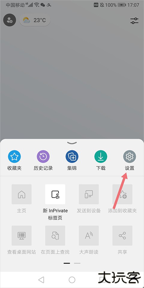 1、打开微软浏览器手机版,进入【设置】。