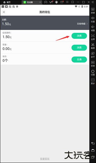 2、进入应用程序后,访问 “我的” 界面,定位红包消费功能入口,直接进入该页面。