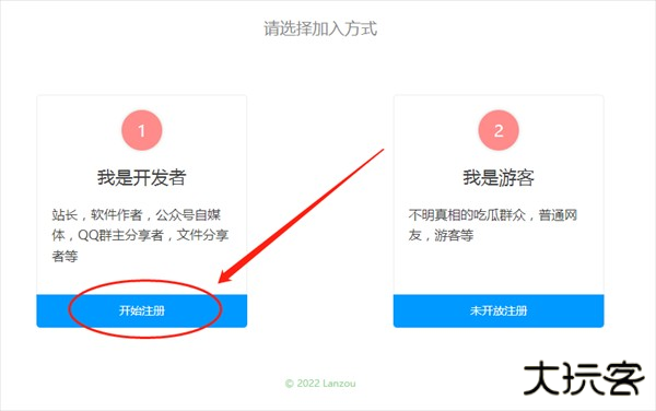 3、在注册类型选择页面需要留神看仔细一点,如果想注册个人账号用于上传文件,就认准并点击代表开发者模式的选项标识。