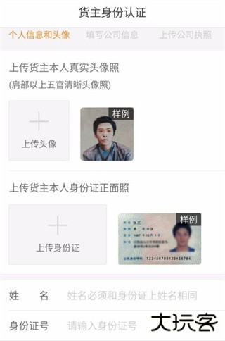 3、在认证中心选择「货主身份认证」,按要求完整填写个人真实信息,包含姓名、身份证号等关键字段。