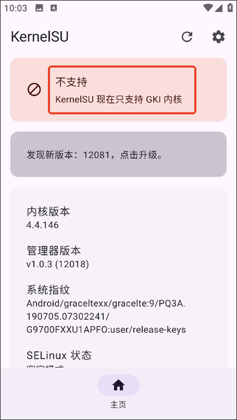 1、打开应用,安装页面显示【不支持】,这种情况要么自己手动编译,将kernel集成到非GKI内核中,然后按照上方方法刷入,要么指望其他大佬为其做适配。