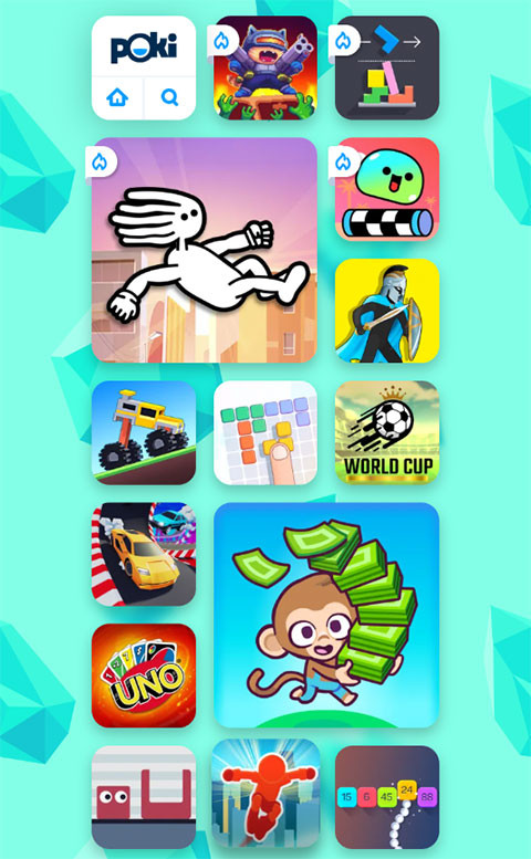 Poki是一款集合了多种类型的小游戏盒子,它能够便捷地打开多种类型的游戏,快速找到你想要游玩的游戏类型。通过网页的形式在线畅玩。Poki内含多种类型的精品游戏,手机端就能轻松游玩,无需下载,点击即玩,无需内存,动作类、冒险类、扑克牌类、体育类、赛车类、射击类等都能在上面找到,还能和好友一起联机,用手柄体验电脑端的乐趣。