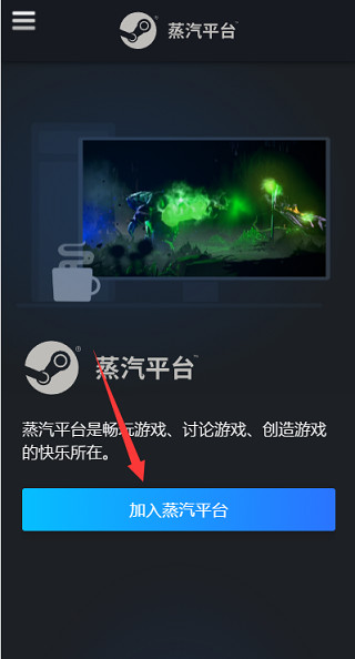 1、通过浏览器打开蒸汽平台,点击“加入蒸汽平台”。