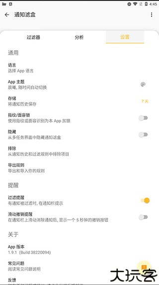 5、在设置界面能够设置语言、主题、过滤规则和各种设置,非常的简洁易用。