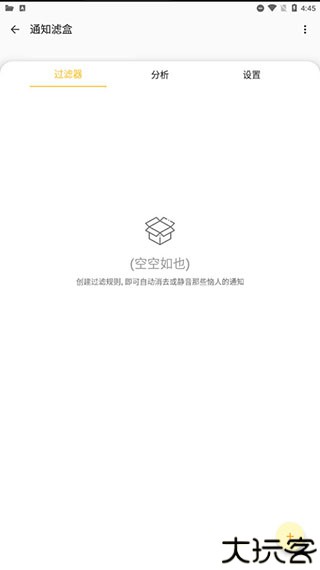 2、授权完后能够看到非常干净的界面,下面有过滤器和分析选项,中间的搜索按钮能够直接点击搜索通知。