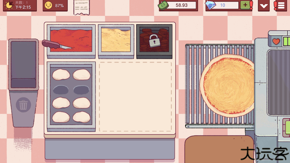 1、打开进入可口的披萨美味的披萨中文安卓版里,经营披萨店轻松制作各式各样的披萨。