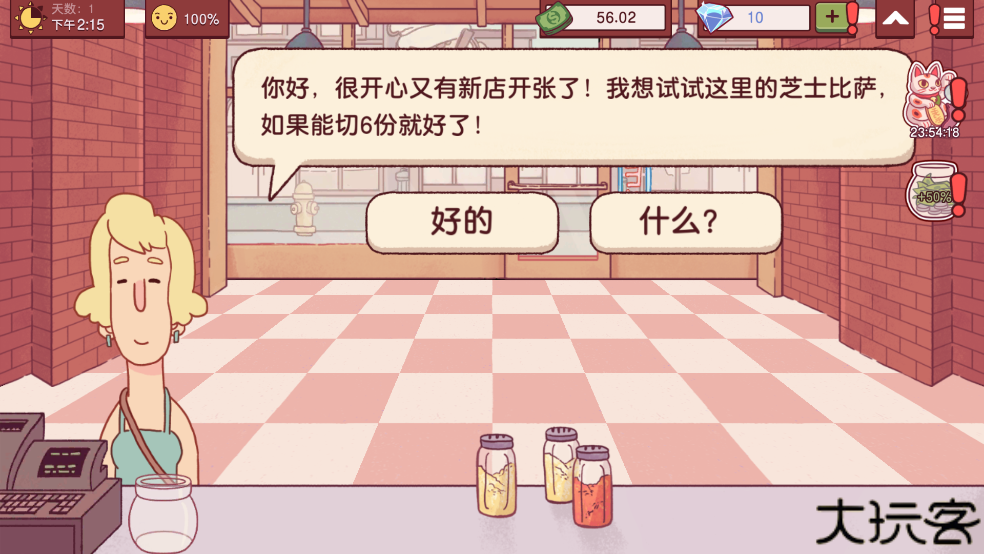1、不同的顾客对于披萨的要求是不同的,玩家需要去满足意愿。