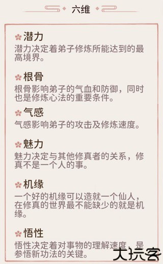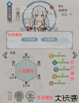 历练需要招收四个重点培养的六边形战士。在元婴前最为重要的属性分别是根骨和气感。