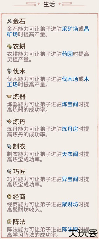 阵法、炼丹、炼器、农耕,玩家只需要一个属性最高的就行,而属性最好大于5,越高越好。