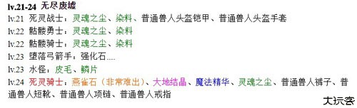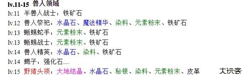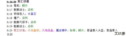 3、lv.11-20分布于兽人领域与死亡沙漠,怪强物优。
