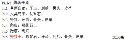 1、lv.1-5材料出于勇者平原,适合初入游戏采集。