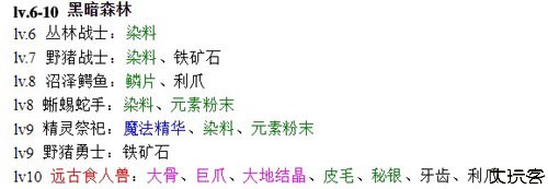 2、lv.6-10转入黑暗森林,材料质量逐步提升。