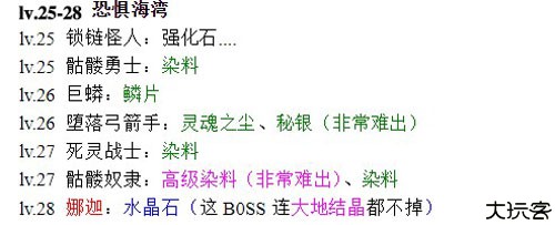 4、lv.21-28涵盖废墟与海湾,掉率较高难度更大。