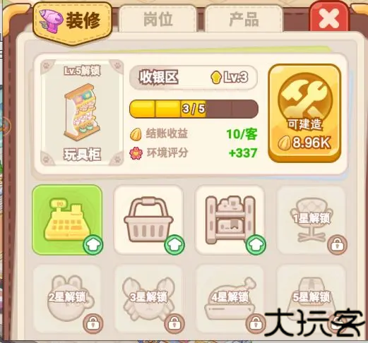 3、通过装修提升视觉品质,不仅能加快收益,还可提高环境评价达成解锁门槛。