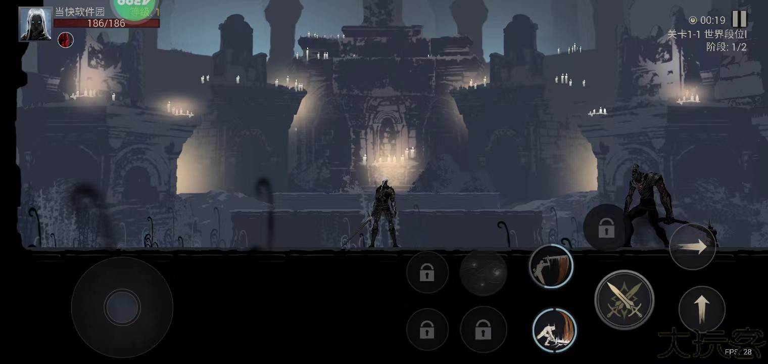 3、然后就可以开始游左侧按钮操纵移动,右侧技能键释放多种攻击。