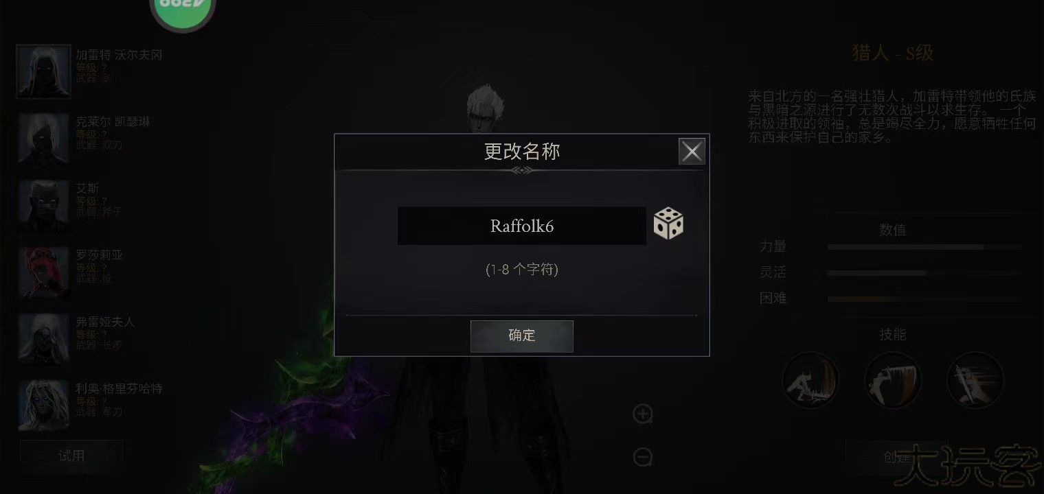 2、点击右下角创建,再在弹窗中完成角色命名即可。