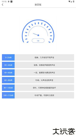 3、进入分贝测量页面可以检测发出声音来进行分贝的测量。