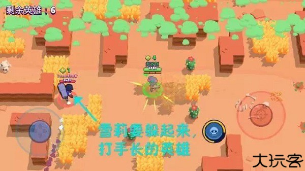 技能决定了雪莉注定是暴力打法,在荒野决斗宝石争霸模式中,会玩的都不跟雪莉打正面。利用这点,咱们玩雪莉就是要千方百计的靠近了再打。雪莉也算远程,边走位边骚扰敌人攒能量,至少保证自己还有两发普攻。要是超级技能好了,利用草丛,障碍物等,蹲草阴人,小脆皮一个必杀技就能解决。