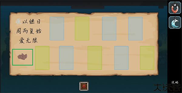 8、观察花图左侧图案,在白天和黑夜并不相同,将白天显示的花放到黄色格子里,黑夜显示的花放到蓝色格子里,即可获得种子。