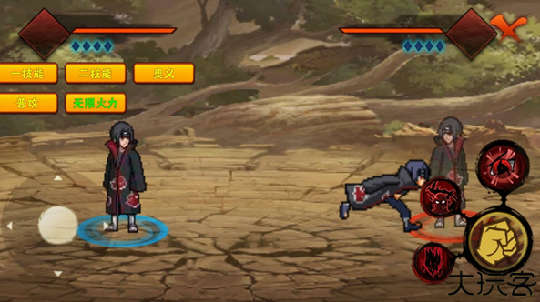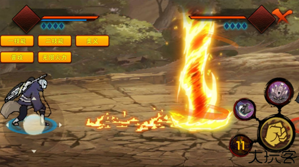 2、可以选择3位忍者,他们的技能和奥义都不一样。