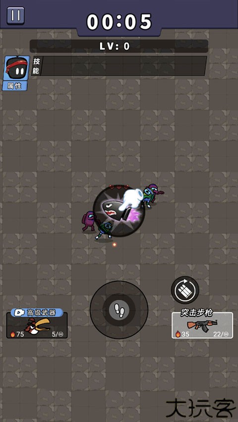 2、滑动摇杆躲避袭击,保持间距,主角自动开火并自动补充弹药。