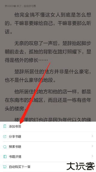 2、下方会直接弹跳出菜单功能,点击添加书签。