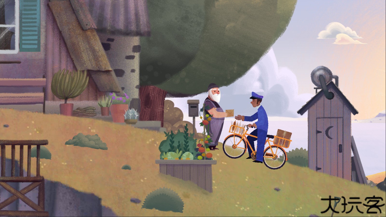 1、点击屏幕,过一会会有一位邮递员来送信,老人看完信以后就默默地整理行装,开始了回忆之旅。
