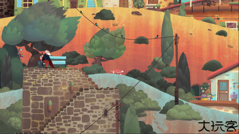 3、采用纯手绘的独特画风,让每一处的场景都犹如一幅艺术画作。