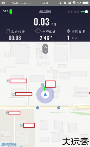 绿色圆点代表当前方位,户外环境可能影响定位准确度。