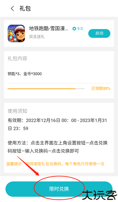 3、在福利页面中选择限时兑换,即可参与礼包领取。