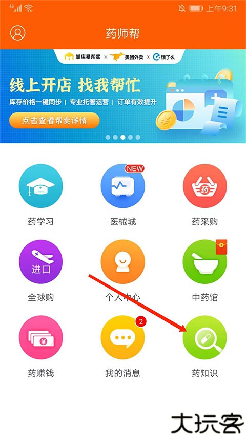 1、打开药师帮app后,选择主页面中“药知识”选项。