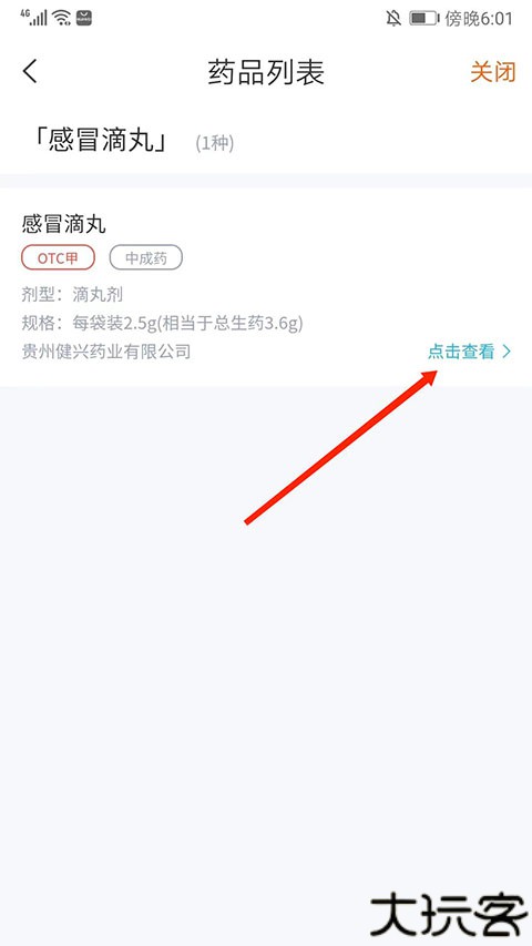 4、查询到资料后,会进行到药品列表,如果想了解更多可以选择右下方“点击查看”选项,