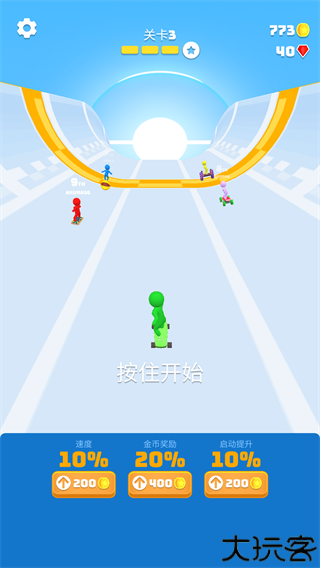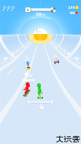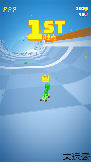 3、玩家使用赚取的金币,去购买更好的滑板,提升自己的优势,夺得冠军。