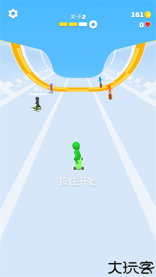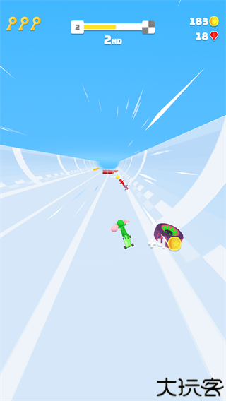 2、玩家灵活的控制橡皮人驾驶滑板在滑道上行驶闯过众多障碍。