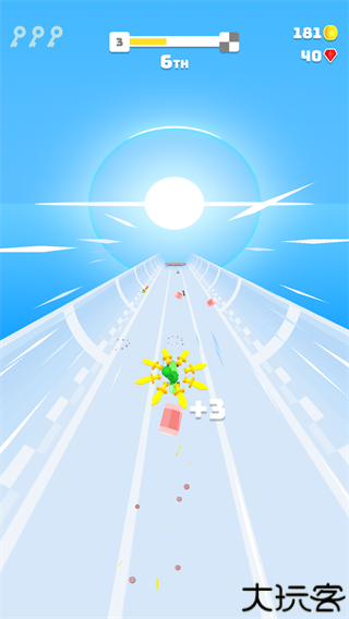 2、玩家需要通过向左或向右滑动屏幕以引导角色冲向终点。